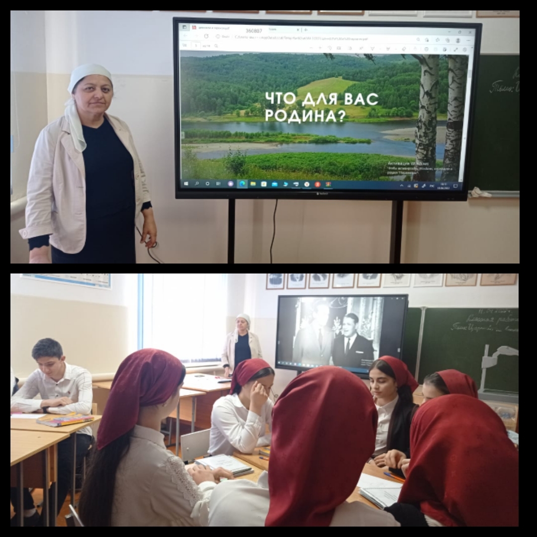 В рамках реализации национального проекта "Образование" " Успех каждого ребёнка " Учитель русского языка и литературы МБОУ"Хиди-Хуторская СШ" Аюбова Райман Хасайновна провела внеклассное мероприятие на тему" Ценности и героизм" среди обучающихся 8- 9 классов.