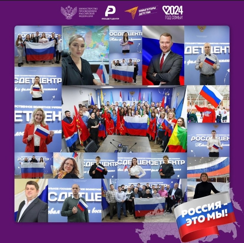 02.11.2024День народного единства воплощает в себе главные нравственные ценности нашего многонационального народа. Именно чувство духовной общности, гордости за свою страну, искреннее стремление сделать всё возможное для её процветания, объединяет наш народ во все времена.Предлагаем вам принять участие в акции «Россия - это мы!» и показать силу нашего единства! Для этог нужно:Сделать серию фотографий с коллегами, друзьями или семьей;Использовать в кадре атрибуты с государственной символикой в разном формате: шарф, флаг, кепка, футболка, рисунок, аквагрим и т.д.;Собрать коллаж из фото и разместить его в нашей тематической рамке: https://vk.cc/cDRA4K;Дополнить публикацию вашим продолжением фразы«Россия - это...»;Опубликовать пост в официальном госпаблике школы, учреждения СПО или на личной странице в социальных сетях;Не забыть добавить хэштег #РоссияЭтоМы.Сотрудники федерального офиса ФГБУ«Росдетцентр» уже присоединились к акции.Единство нашего народа - залог счастливого будущего нашей великой страны!#РДЦ #Росдетцентр #Минпросвещения #ГодСемьи #НавигаторыДетства