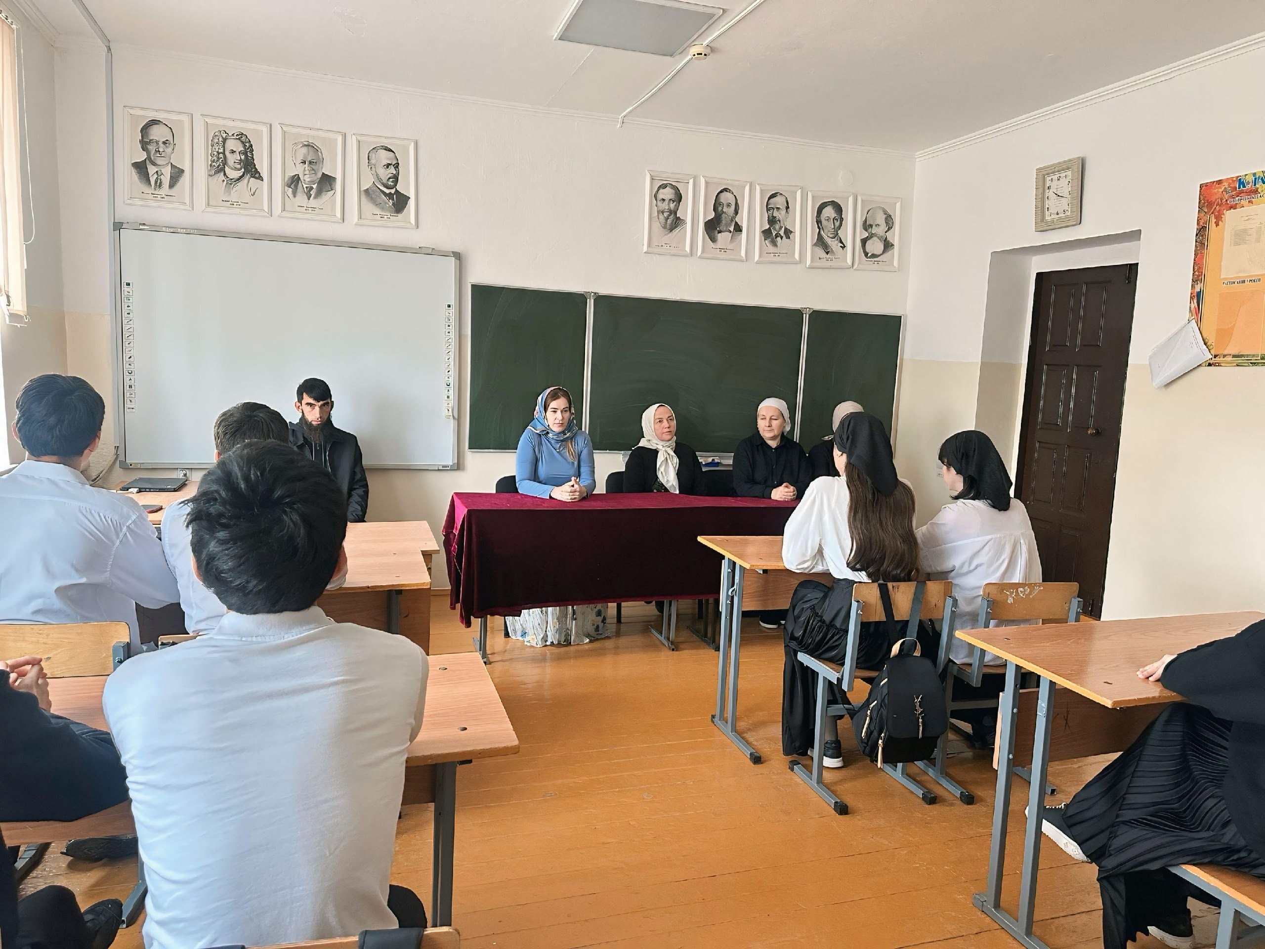 13.11.2025В МБОУ "Хиди-Хуторская СШ" состоялось мероприятие в рамках реализации Единого концепция духовново нравственного воспитание и развитие подрастающего поколения Чеченской республики.Встречу провели: Главный специалист администрации Хиди-Хуторского сельского поселения Курчалоевского муниципального района Салтыгова Амнат Адамовна, дирекор школы Салтыгова Айман Мухмадиевна и духовник Айдамиров Адам Исаевич.