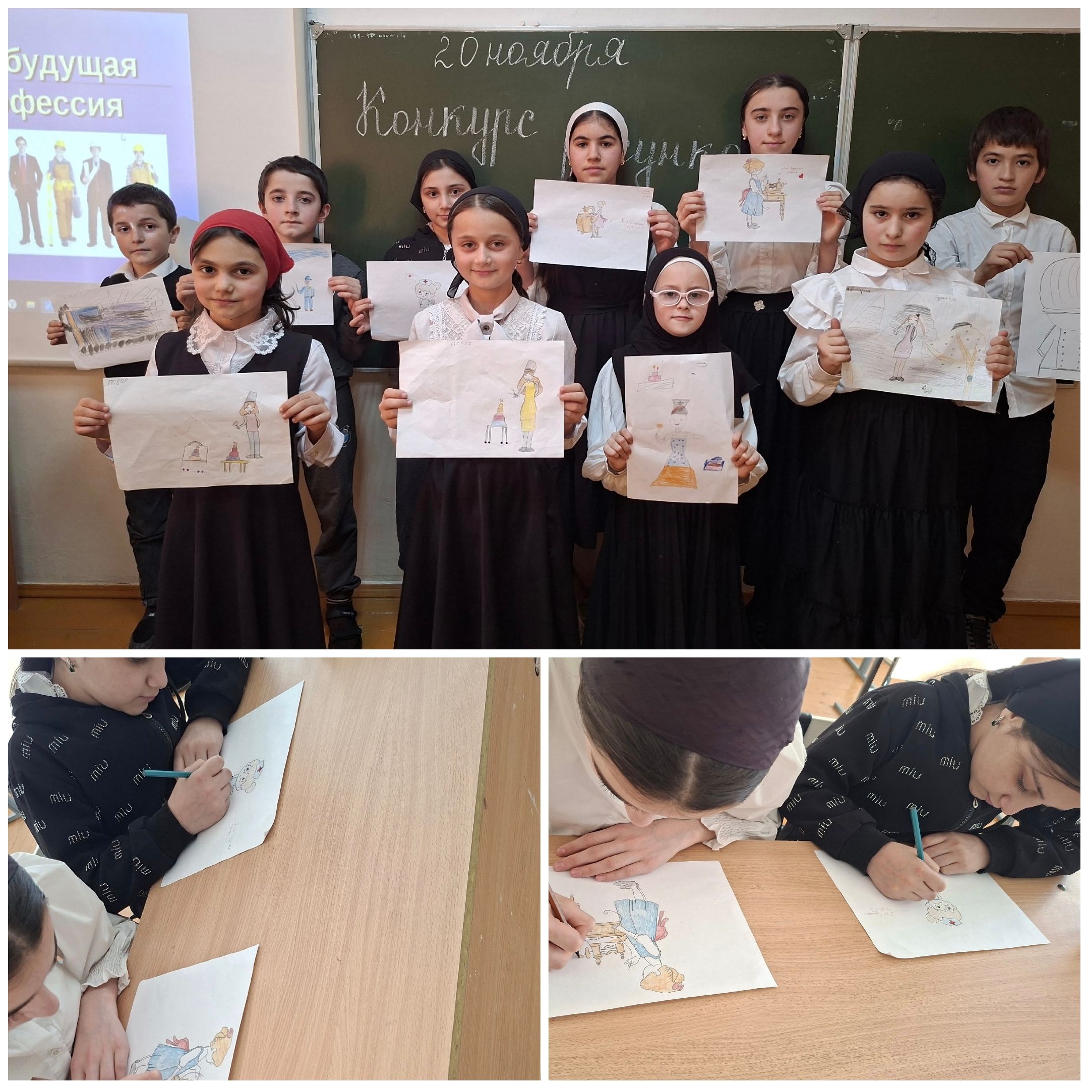 20.11.2025Конкурс рисунков «Моя будущая профессия» В МБОУ "Хиди-Хуторская СШ» для учеников начальных классов проведен конкурс рисунков «Моя будущая профессия» Дети нарисовали представителей разных профессий. певицу учителя космонавта, футболиста, учёного, полицейского, дизайнера одежды, писателя художника и т.д. Конкурс вдохновил ребят задуматься о своём будущем и поверить что все возможно. Дети расширили свои знания o различных типах профессии, узнали о востребованных современных профессиях.